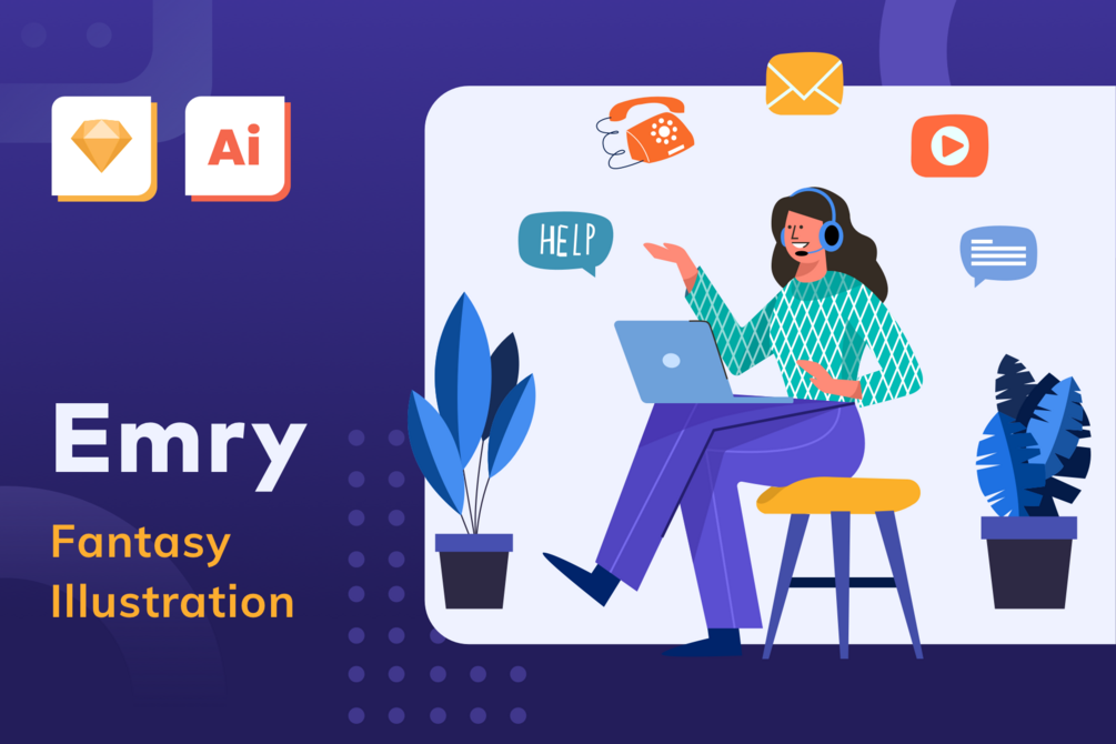 Emry - Fantasy Illustration contains 6 illustrations that have unique scenes that explain activities related to the world of a startup. Comes with a very flexible version for your website needs very fitting for the header and features. Also, be to enhance the appearance of onboarding your mobile application. and maybe also to complete your presentation slide to be more attractive.