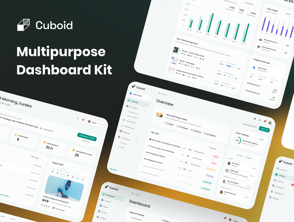 Cuboid is a modern, minimalist, and easy to use dashboard UI Kit for multi-projects. It contains 125+ pre-made dashboard design in 10 categories. The product made from scratch with Sketch and Figma.
