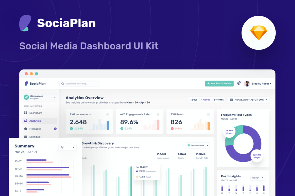 SociaPlan is made with love for details and fast workflow. With total 10 layout and 50+ card design, it will help you create prototypes for Social Media Dashboard you are working on. Created using shape layers, free to use Google Fonts and Vector graphic images. Pulse comes in sketch file formats you will very easily combine it with other plugins.