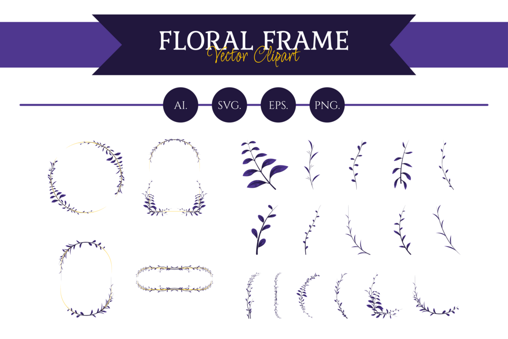 Midnight Floral Frame Clipart