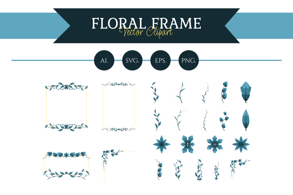 Ocean Blue Floral Frame Clipart